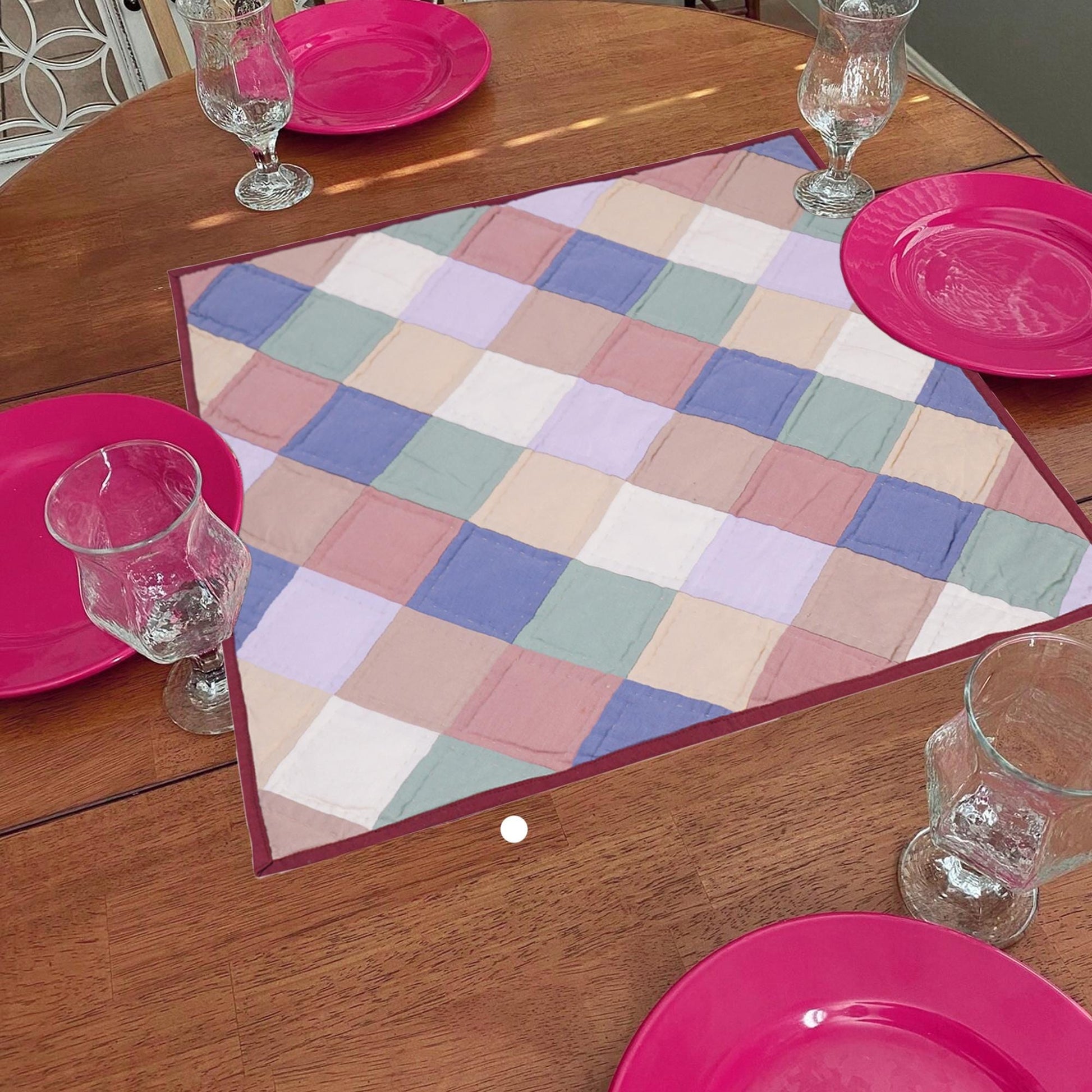 Small quilt hand quilted 20"x20" table topper,square block, patchwork CALICO square country rod pocket by HOME HEART Brands(Made in India)