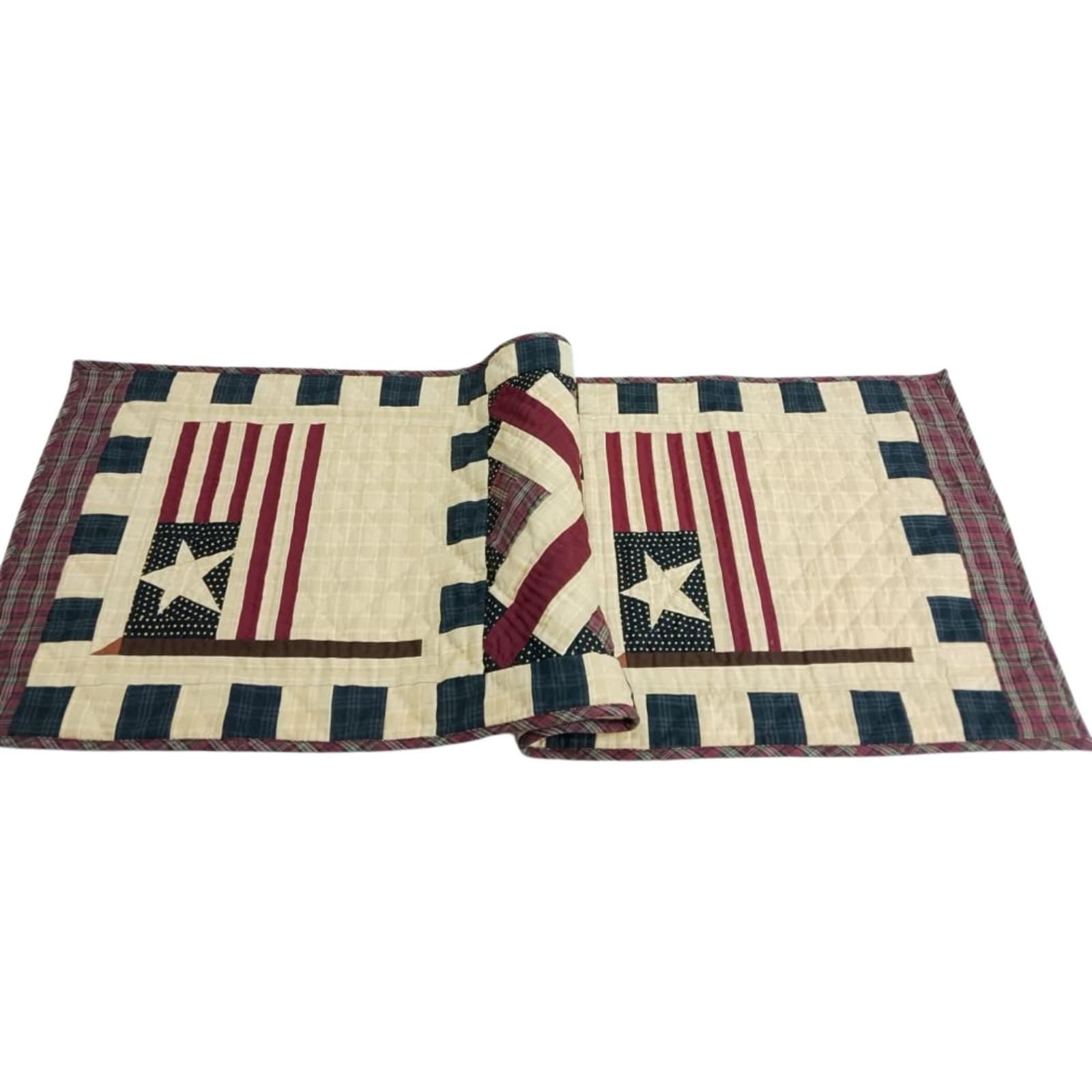 Country Cabin American Flag Patchwork – Hand Quilted Table Runner by Home Heart Brands.