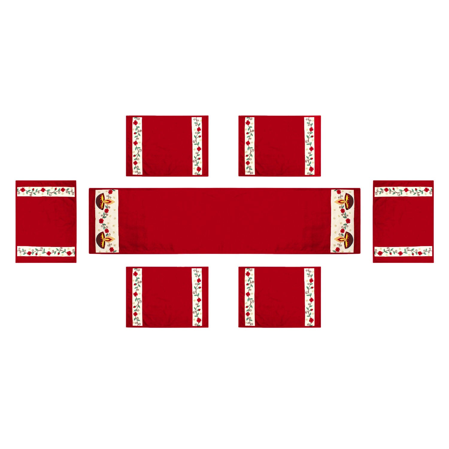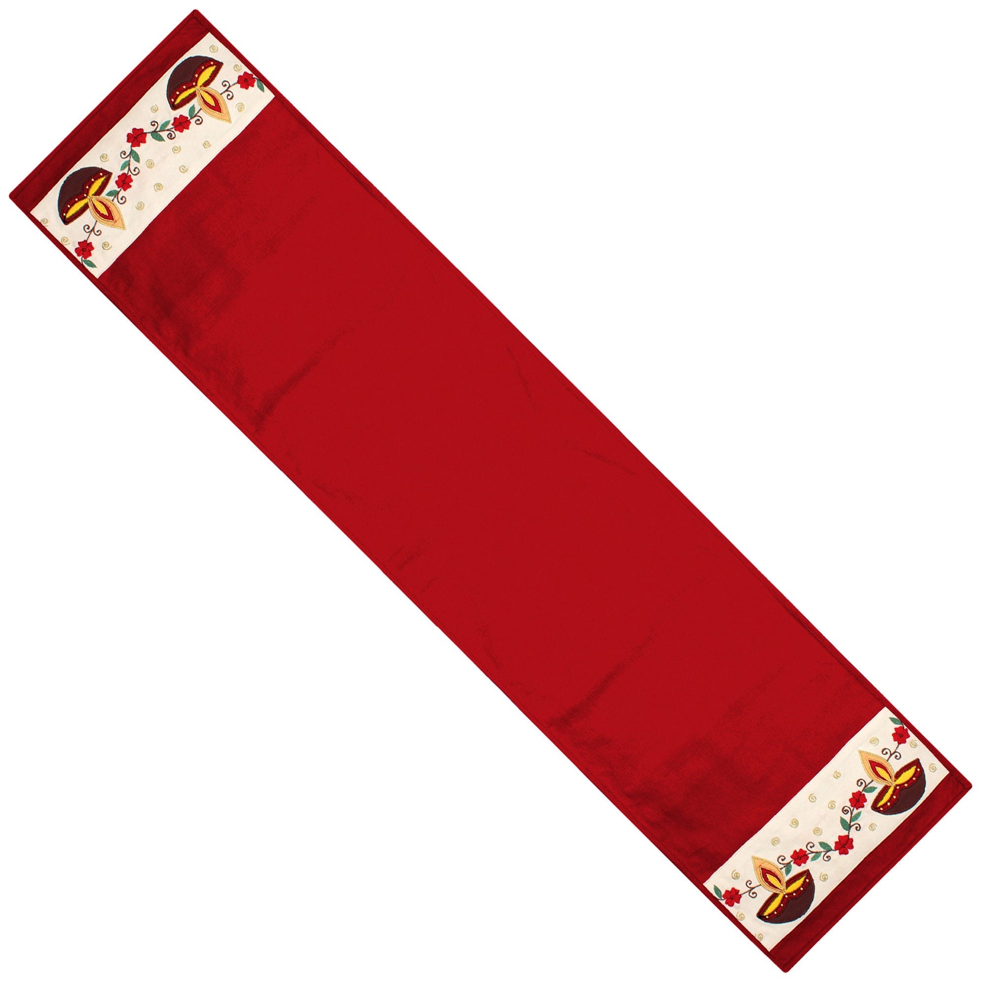 Table runner Toppers duck cotton Premium tapestry fabric Anokhi diyas red offwhite applique embroidered by Home Heart Brands(Made in India)