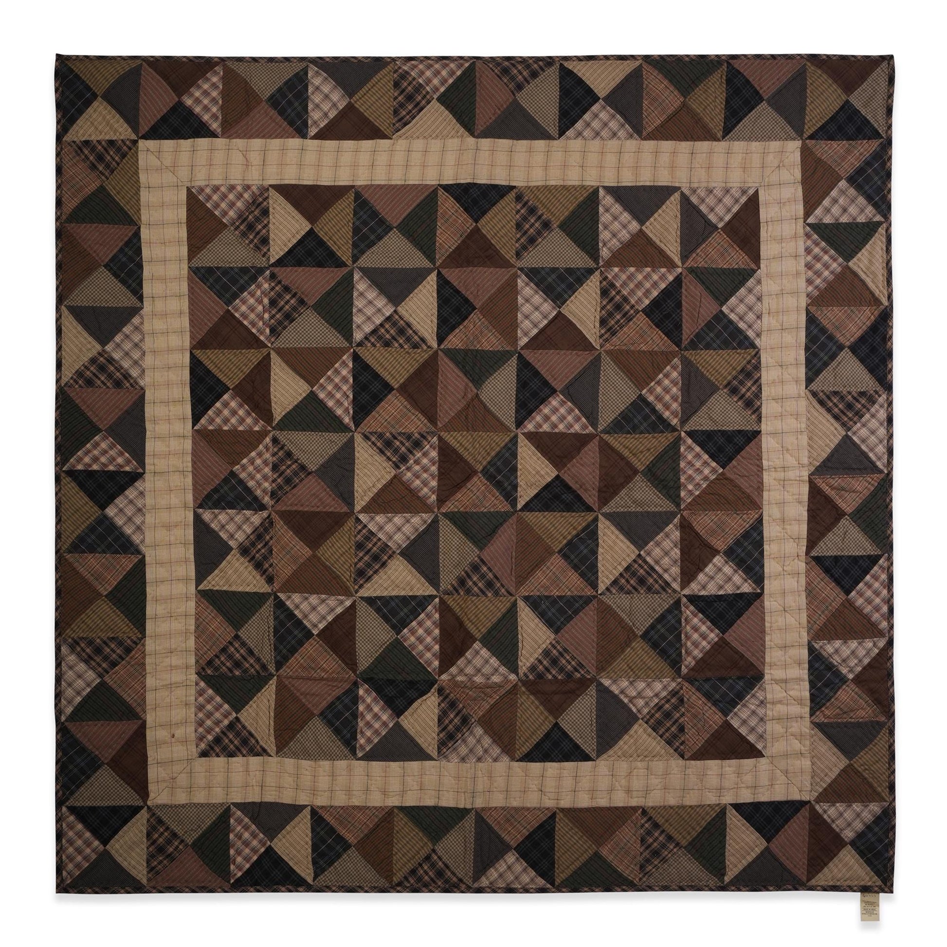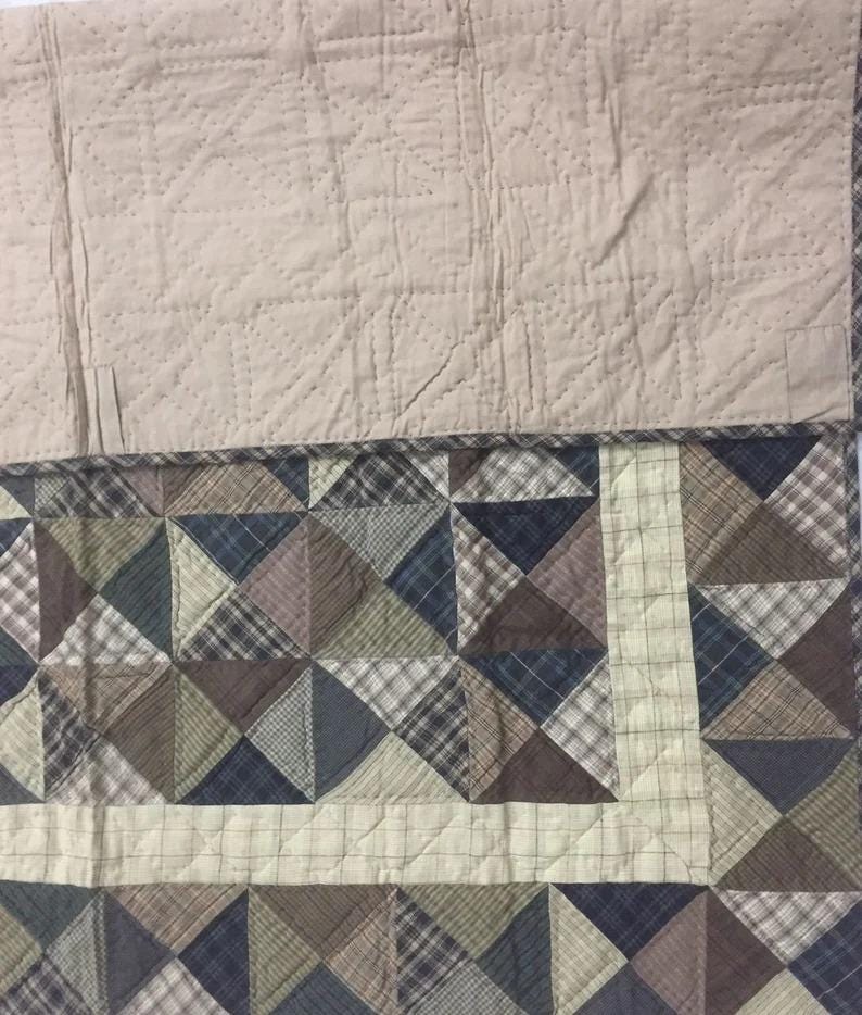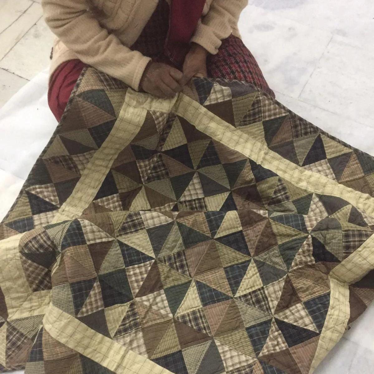 MATERIAL:100% high quality cotton fabric with mix plaid cotton fabrics. Have small patches and pieced together tightly to last after years of use. Padded with cotton layer for extensively quality quilting for durability. Reverse side is solid khaki. View the entire Kaleidoscope design.