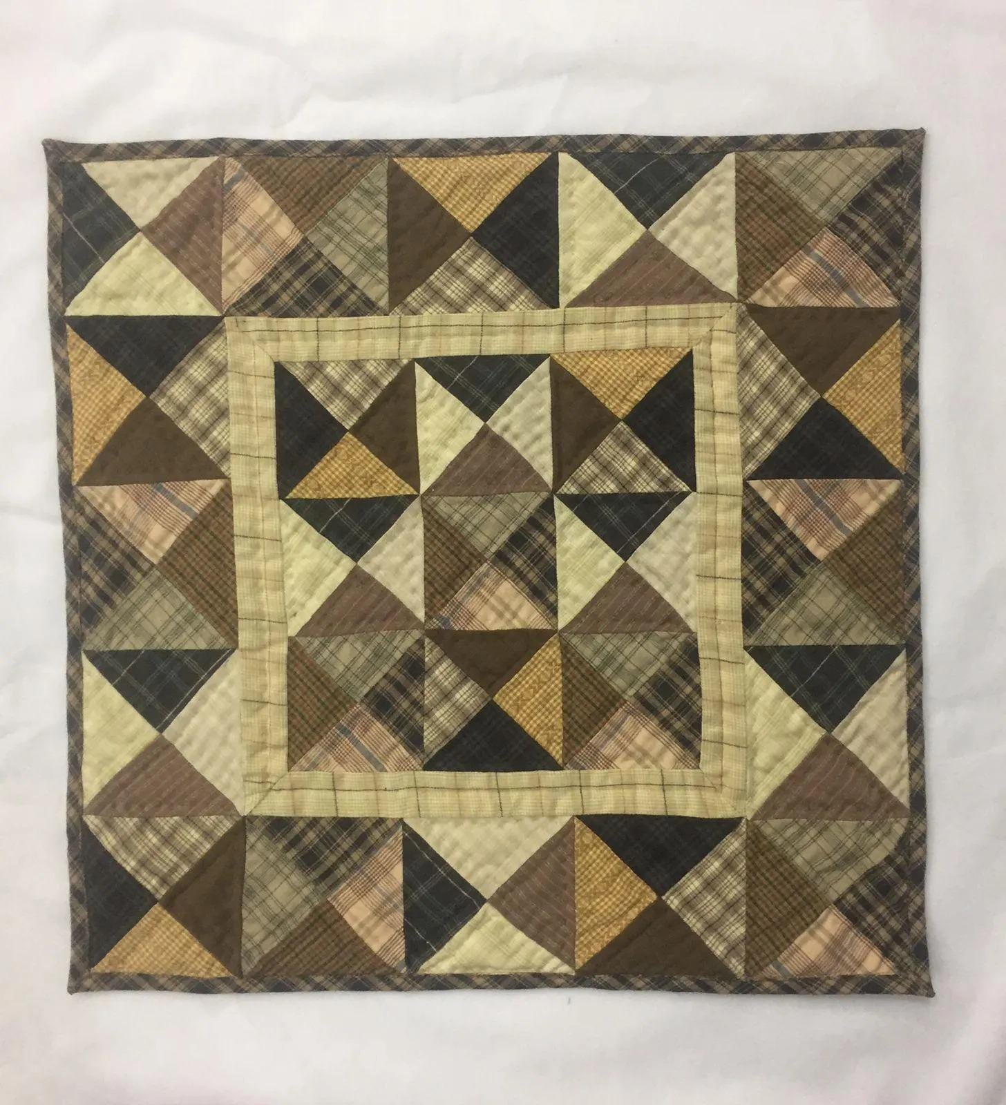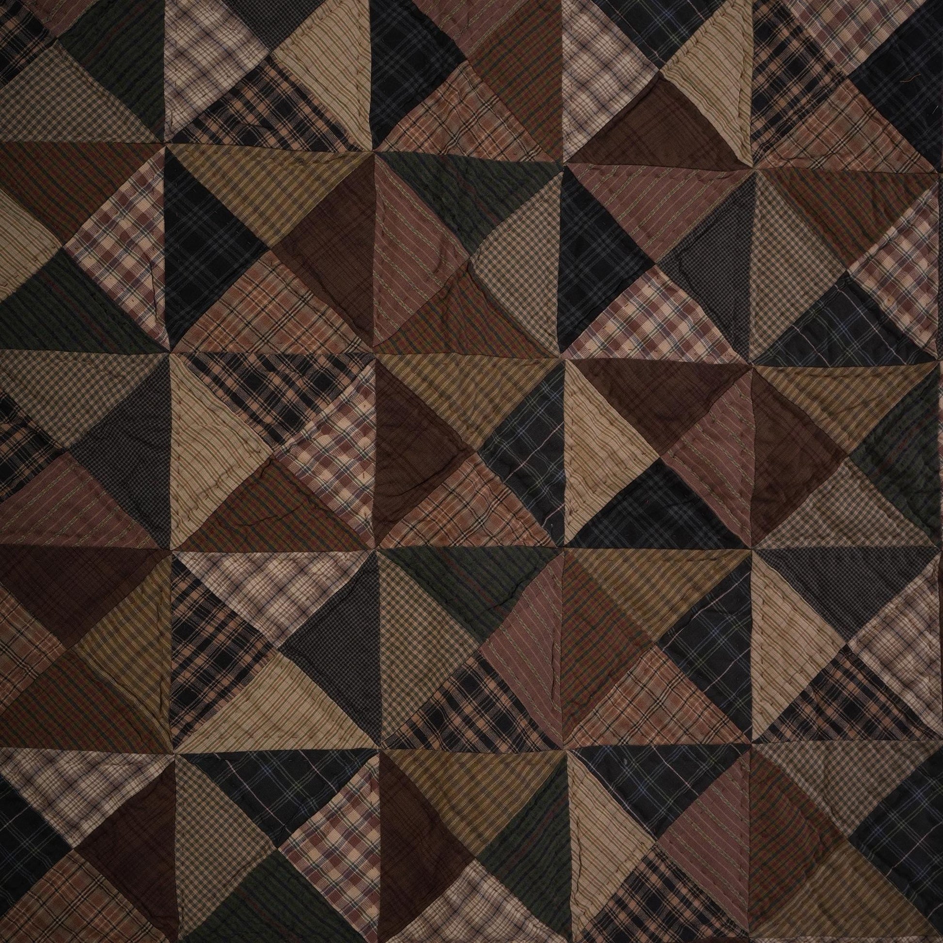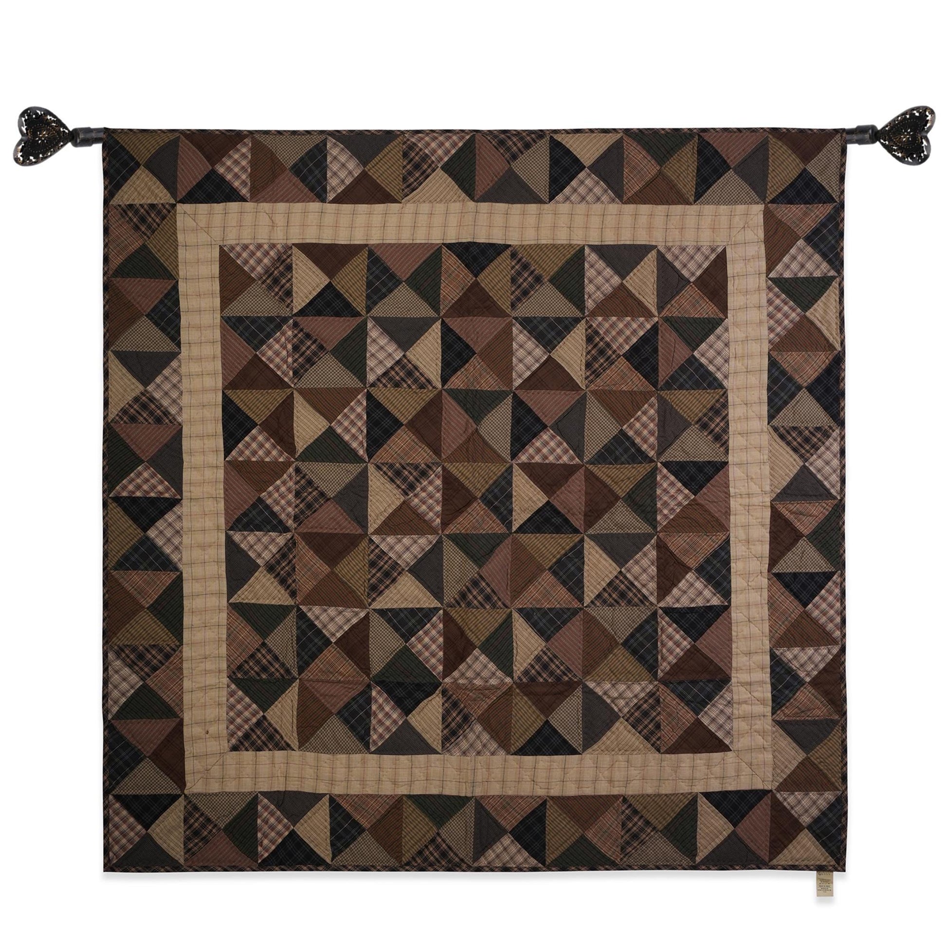 MATERIAL:100% high quality cotton fabric with mix plaid cotton fabrics. Have small patches and pieced together tightly to last after years of use. Padded with cotton layer for extensively quality quilting for durability. Reverse side is solid khaki. View the entire Kaleidoscope design.
