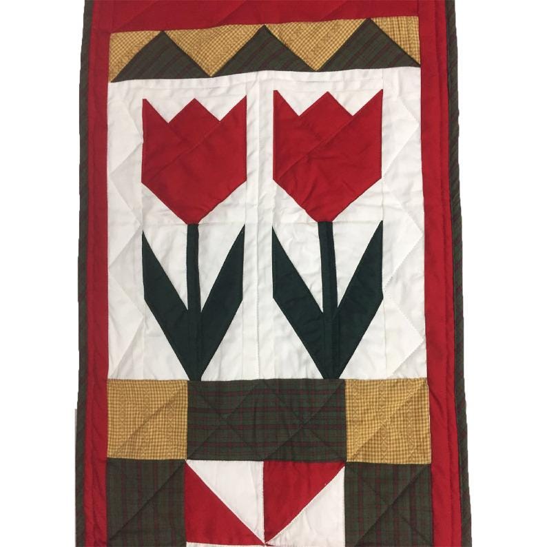 Tulip hand made, hand quilted table runner, throw, patchwork Table Toppers Calico Country cotton fabric by HOME HEART Brands(made in INDIA)