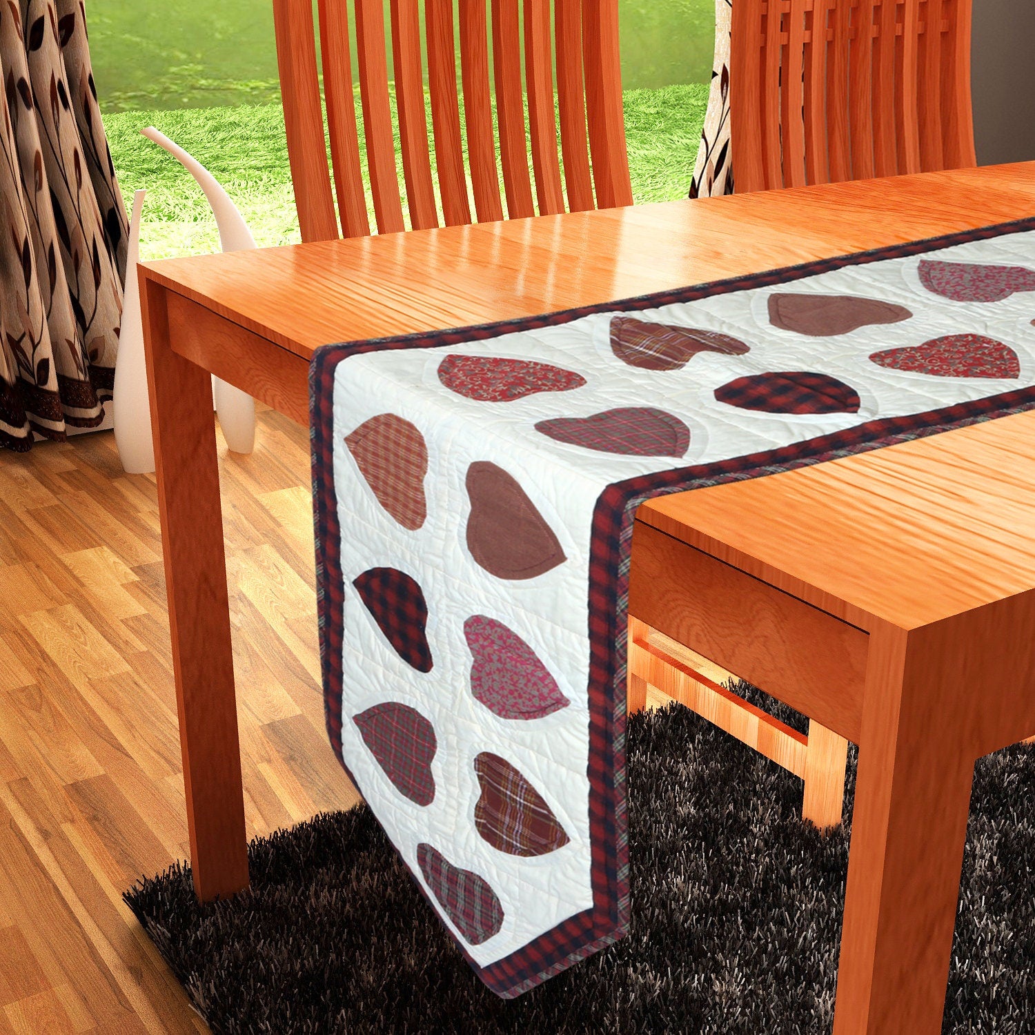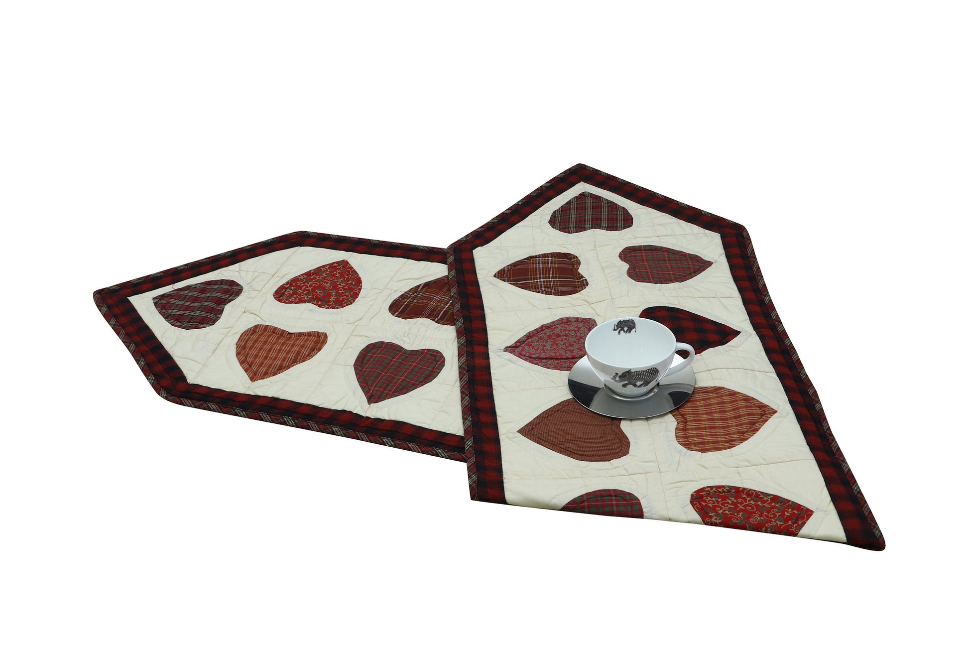 Valentine's Day quilted patchwork Table Runners & Toppers Hearts multi calico plaid and print fabric by HOME HEART Brands( Made in India)