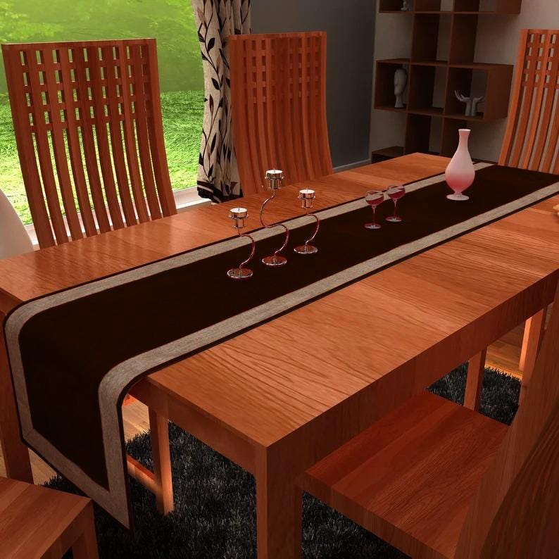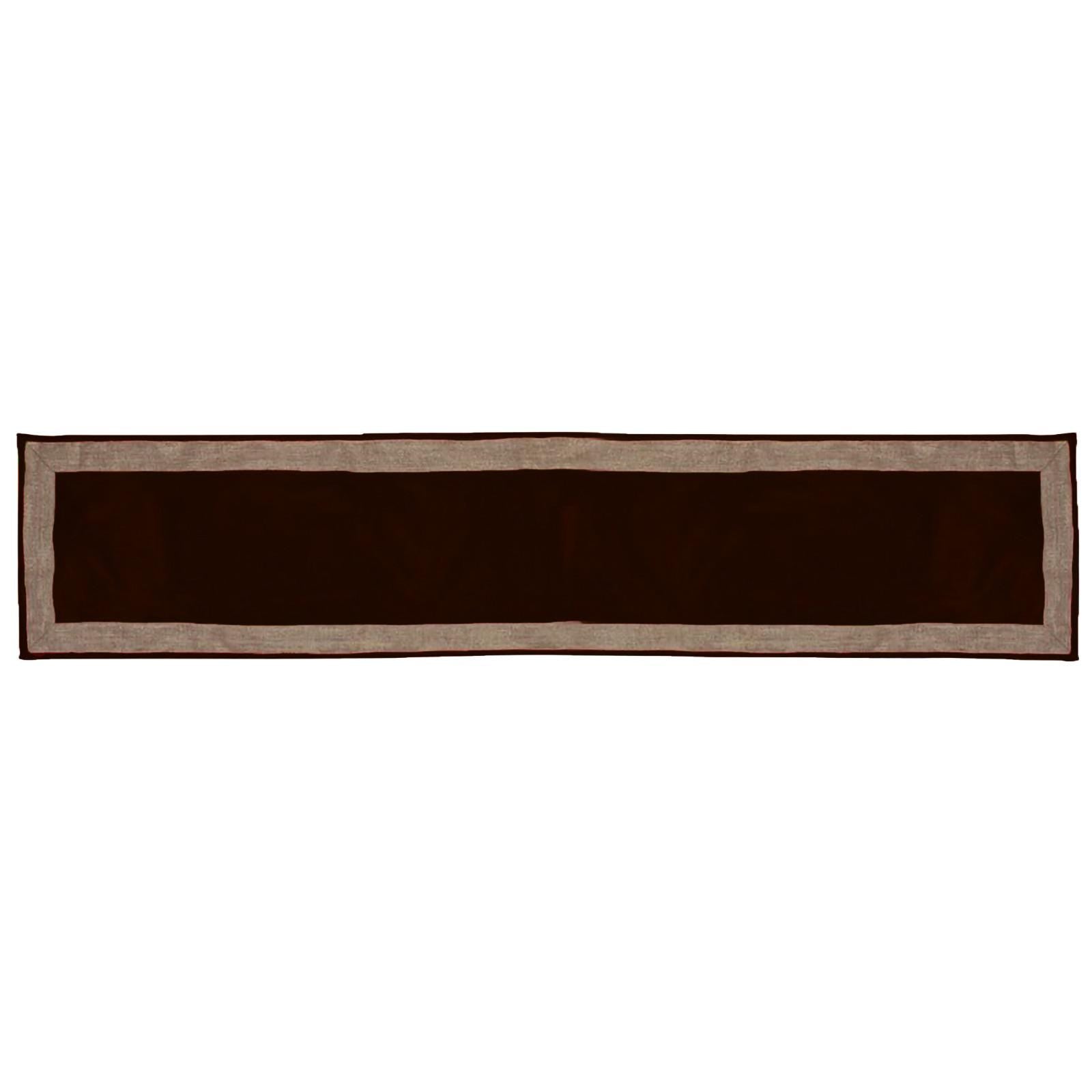 The table runner are made with brown velvet fabric and ivory lurex jute border.