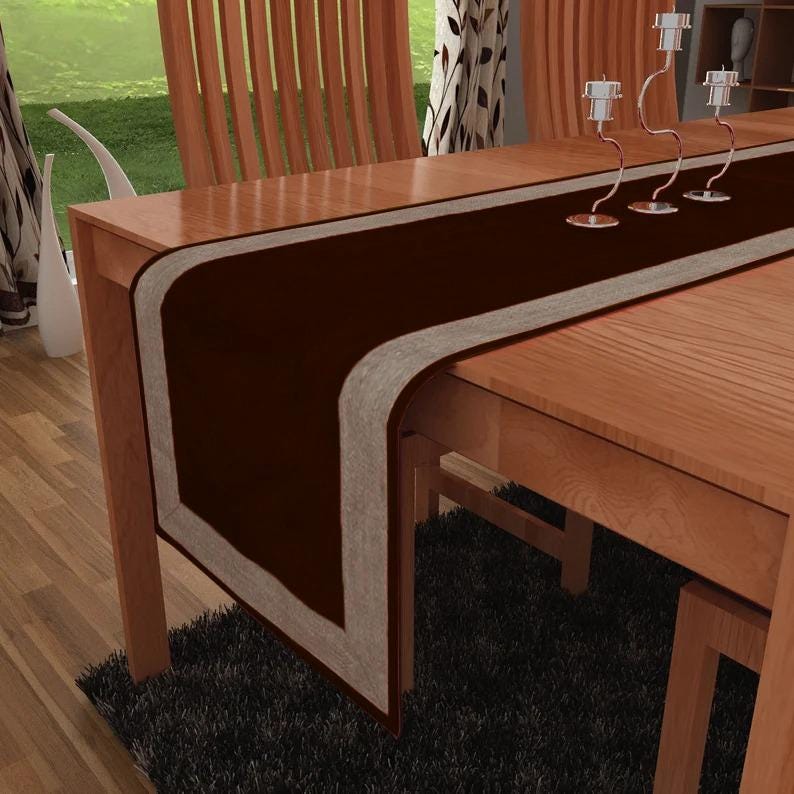 Velvet Table Runner & Toppers Premium brown velvet with ivory lurex jute border double layer by Home Heart Brands(made in INDIA)