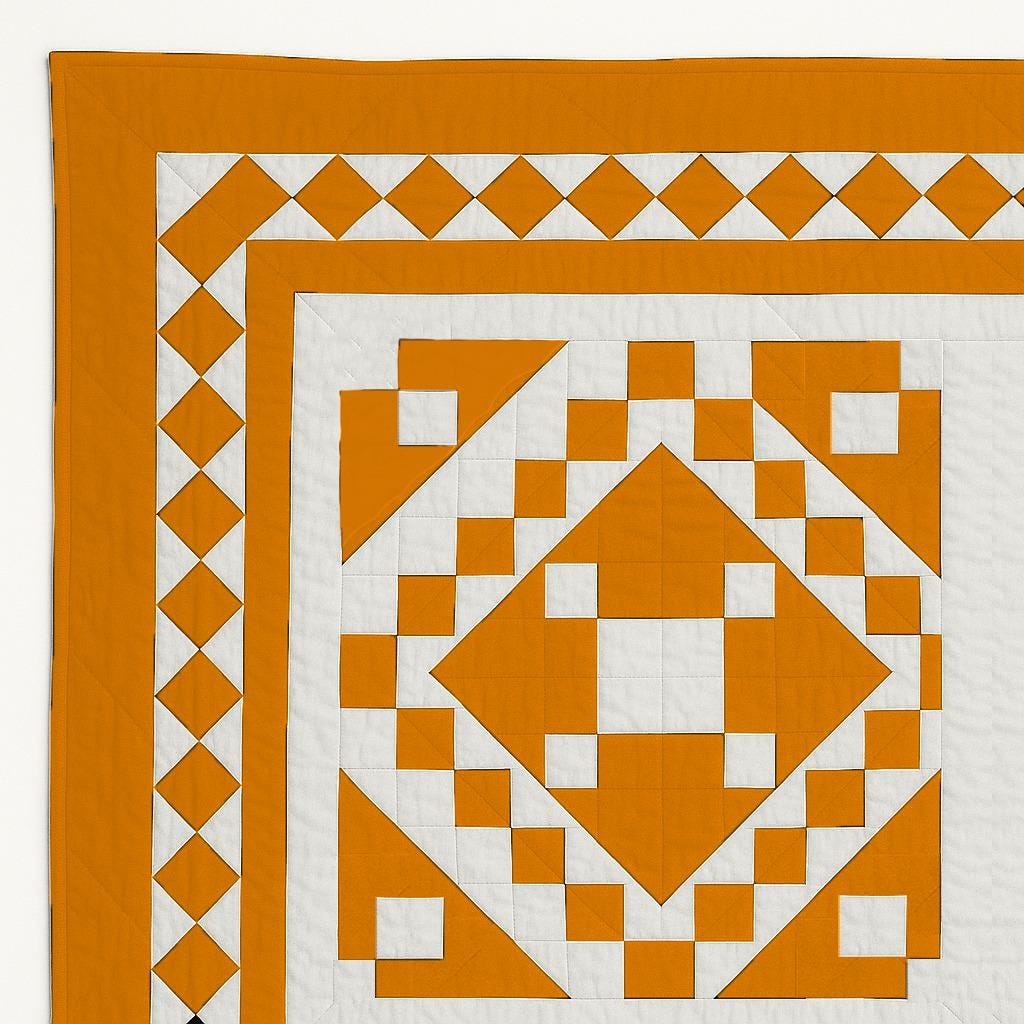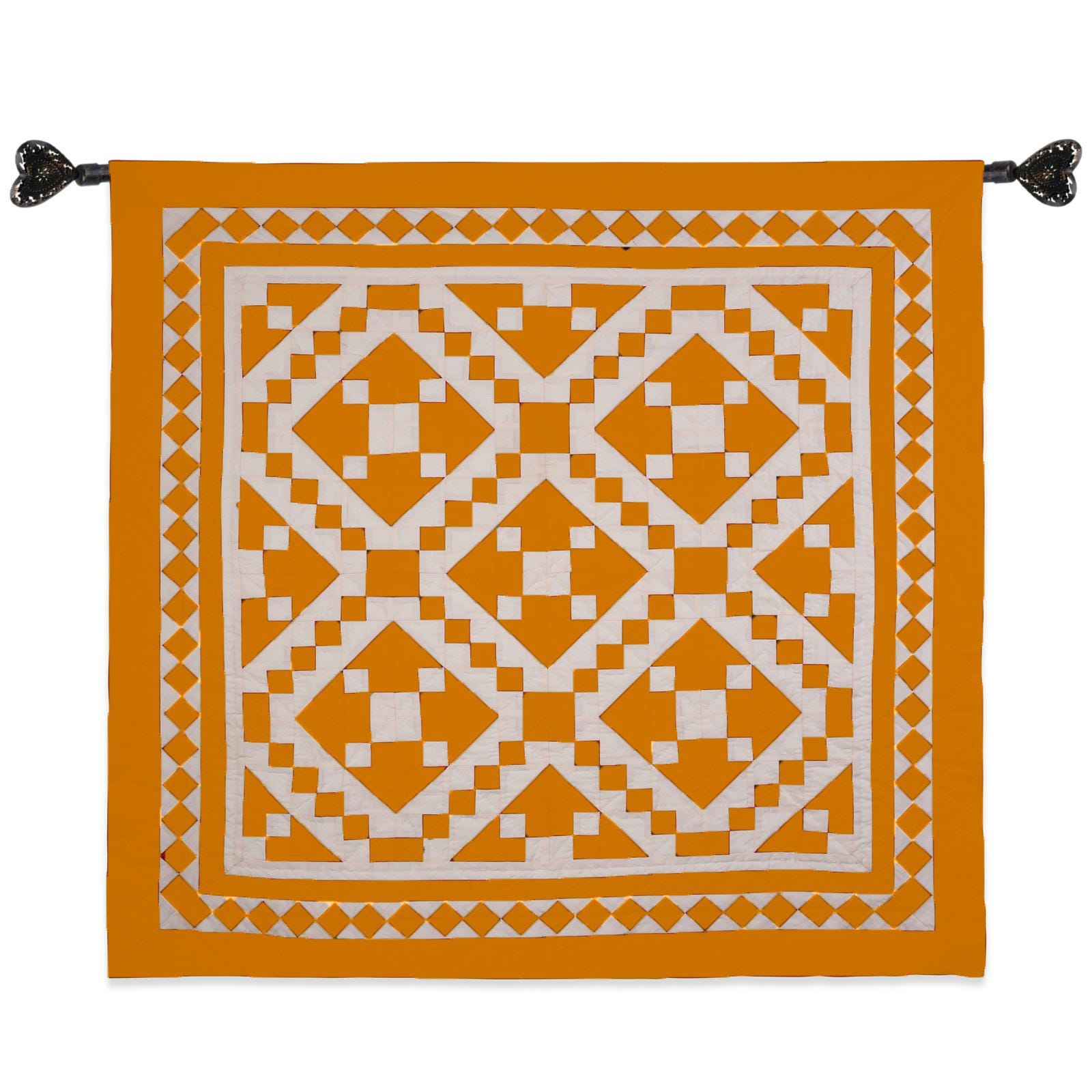 Crafted from a beautiful Patchwork of fall orange and Off-White Calico Cotton fabric, this quilt showcases a classic Diamond and Square design.