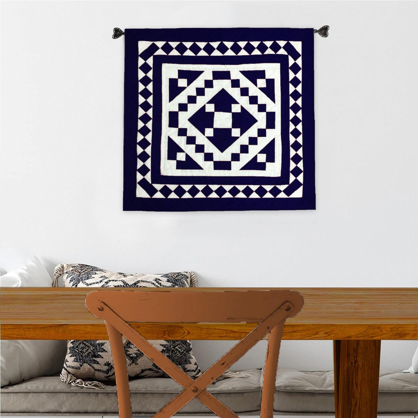 This versatile wall hanging quilt features three sewn pockets on the back for easy hanging. It can also be used as a cozy throw for your sofa, chair, table, or bed. Perfect for adding warmth and charm to any wall, it’s also a wonderful choice as a baby quilt.