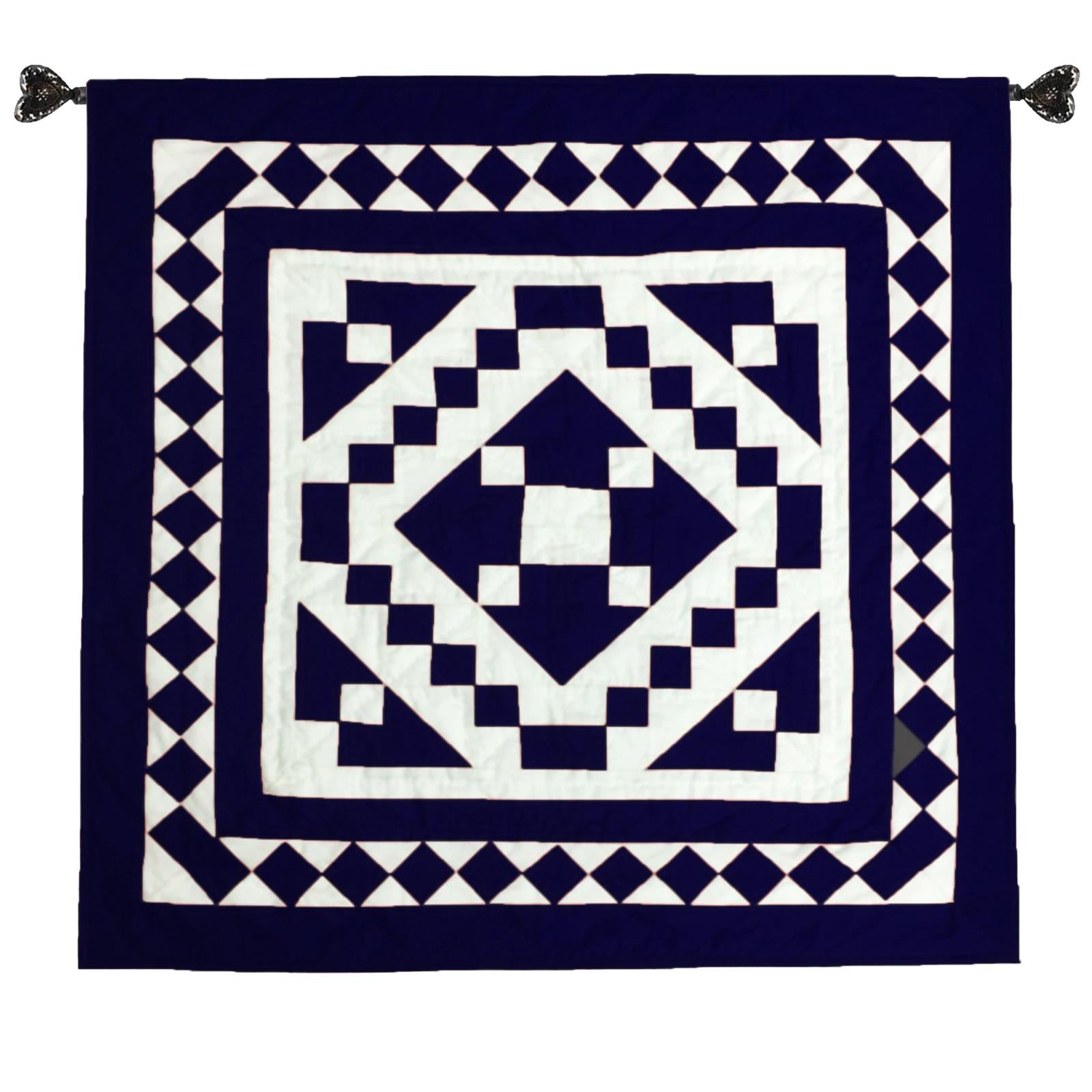 Wall hanging hand made hand quilted quilt, Throws, Table topper, Baby Quilt Navy blue Diamond square cotton quality by HOME HEART Brands