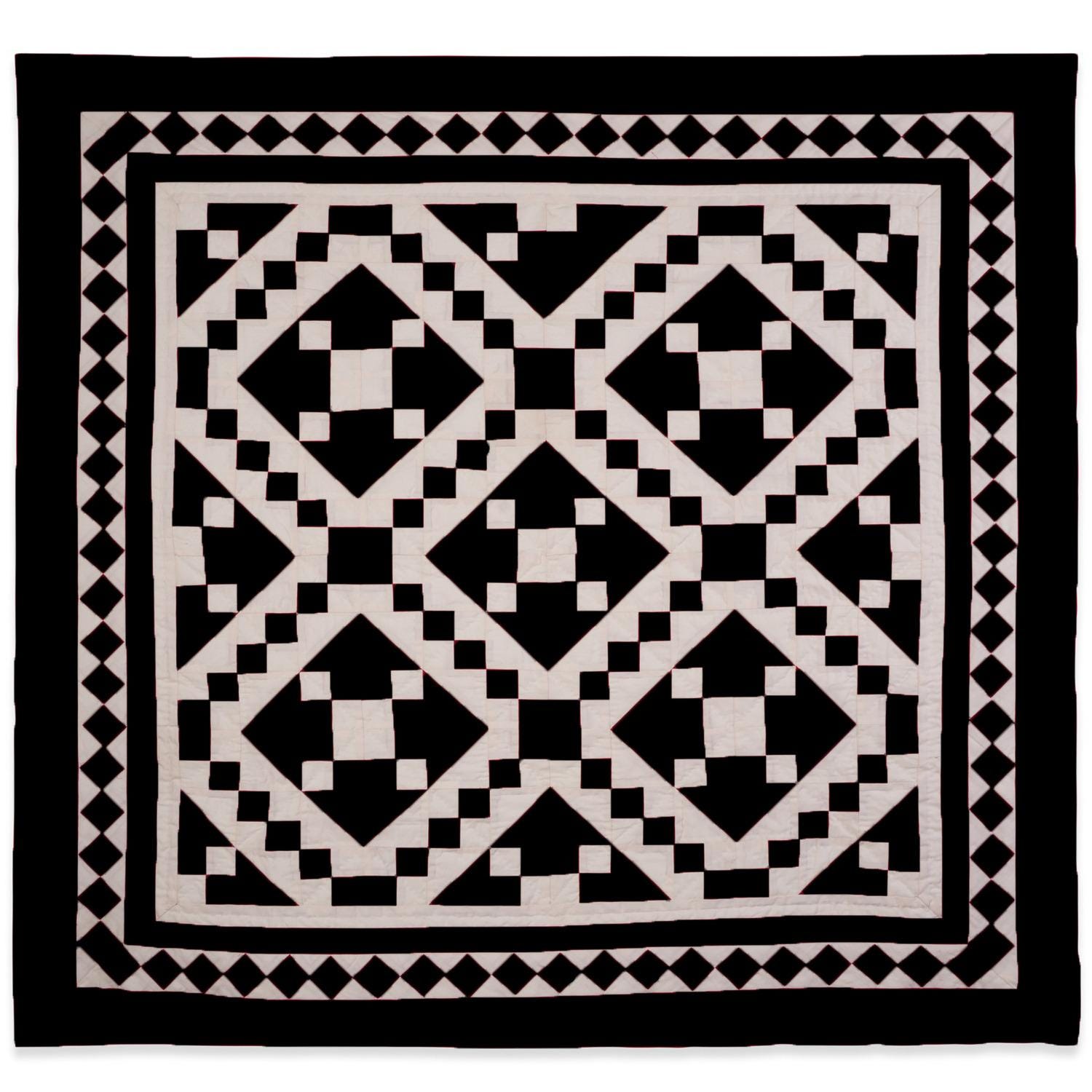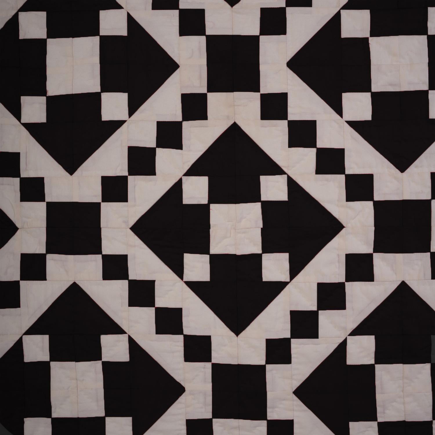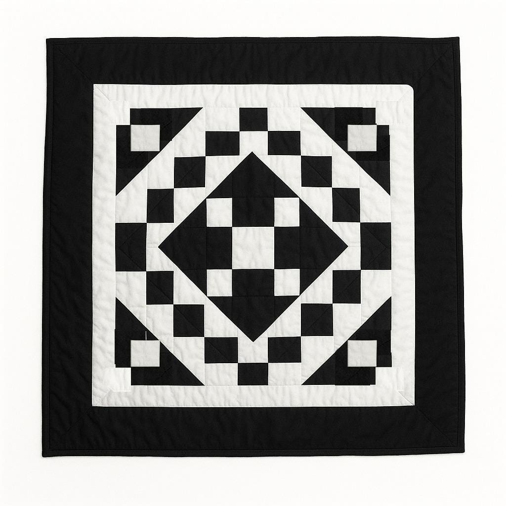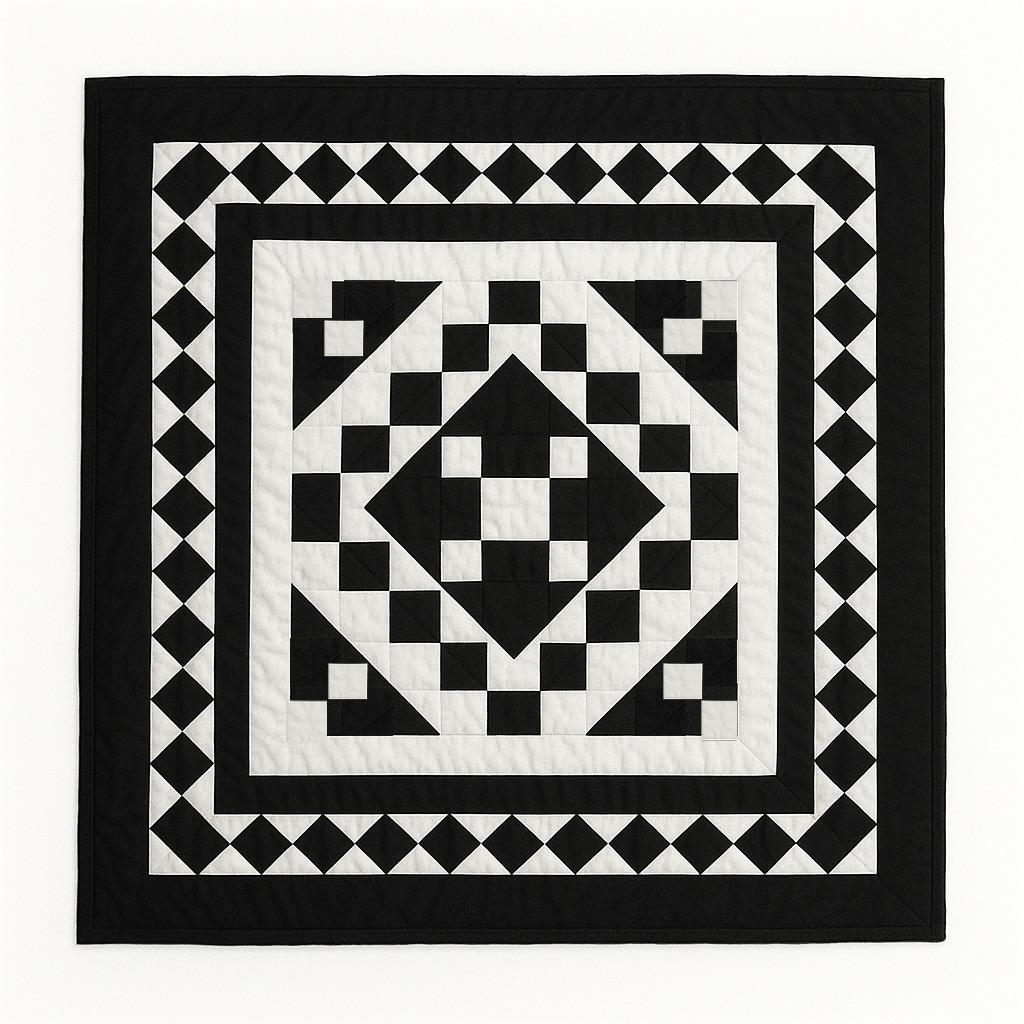 Made of Patchwork Black and Off-White Calico cotton fabric, creating a Diamond and Squares.