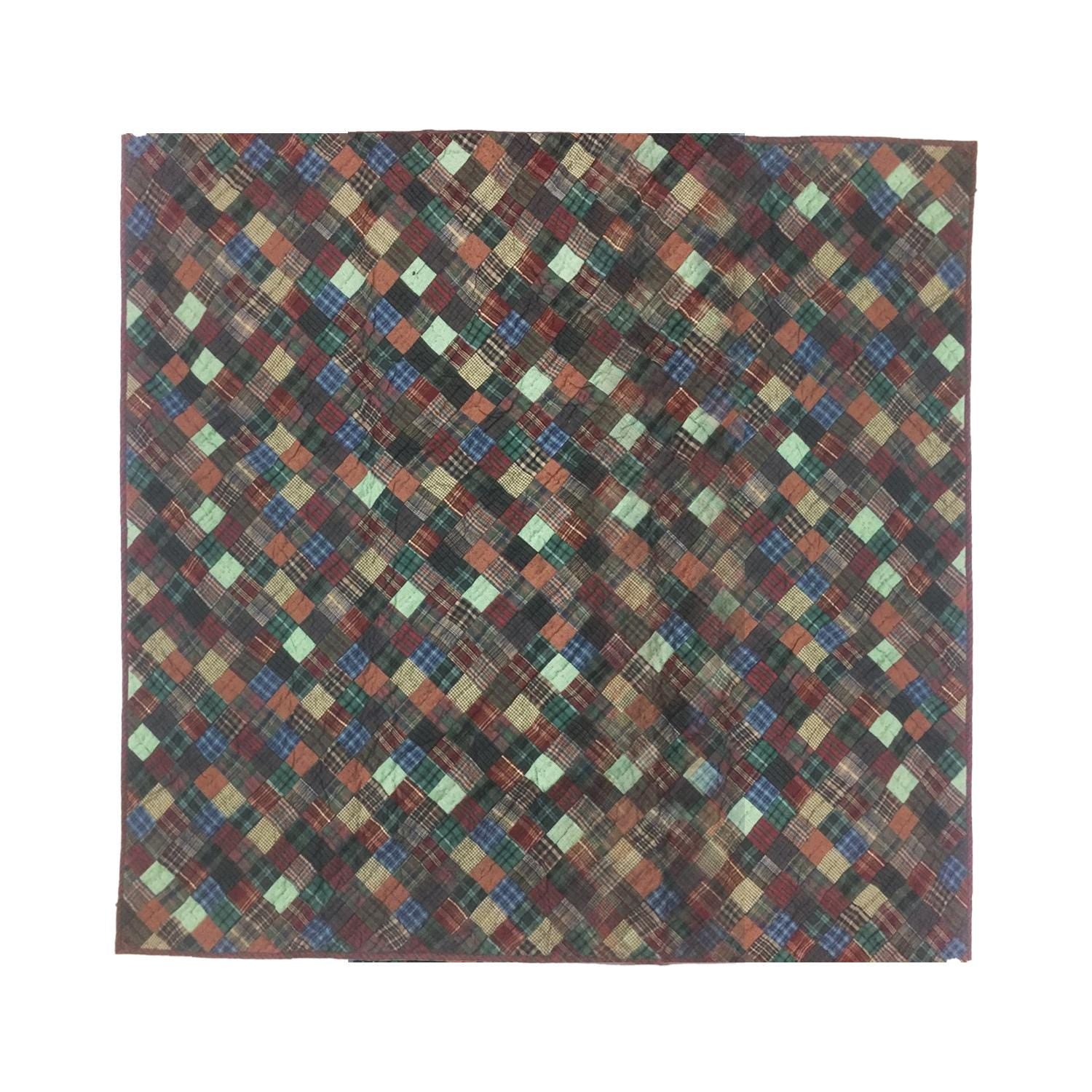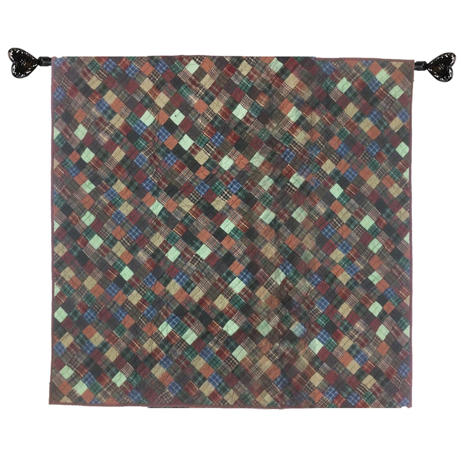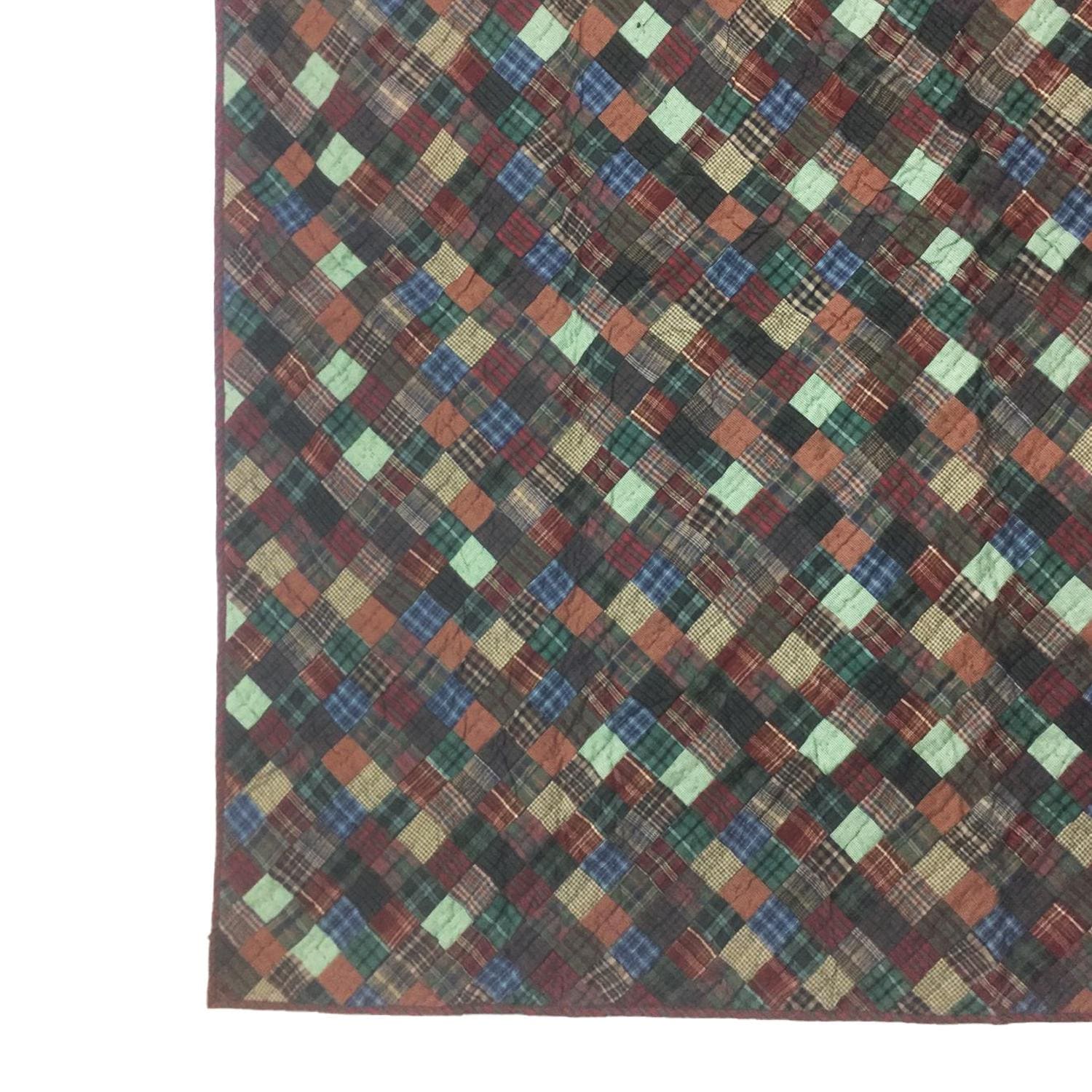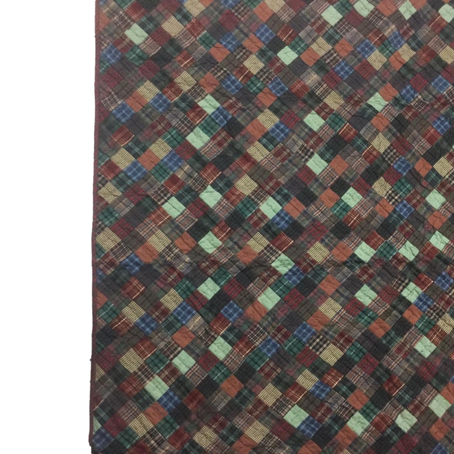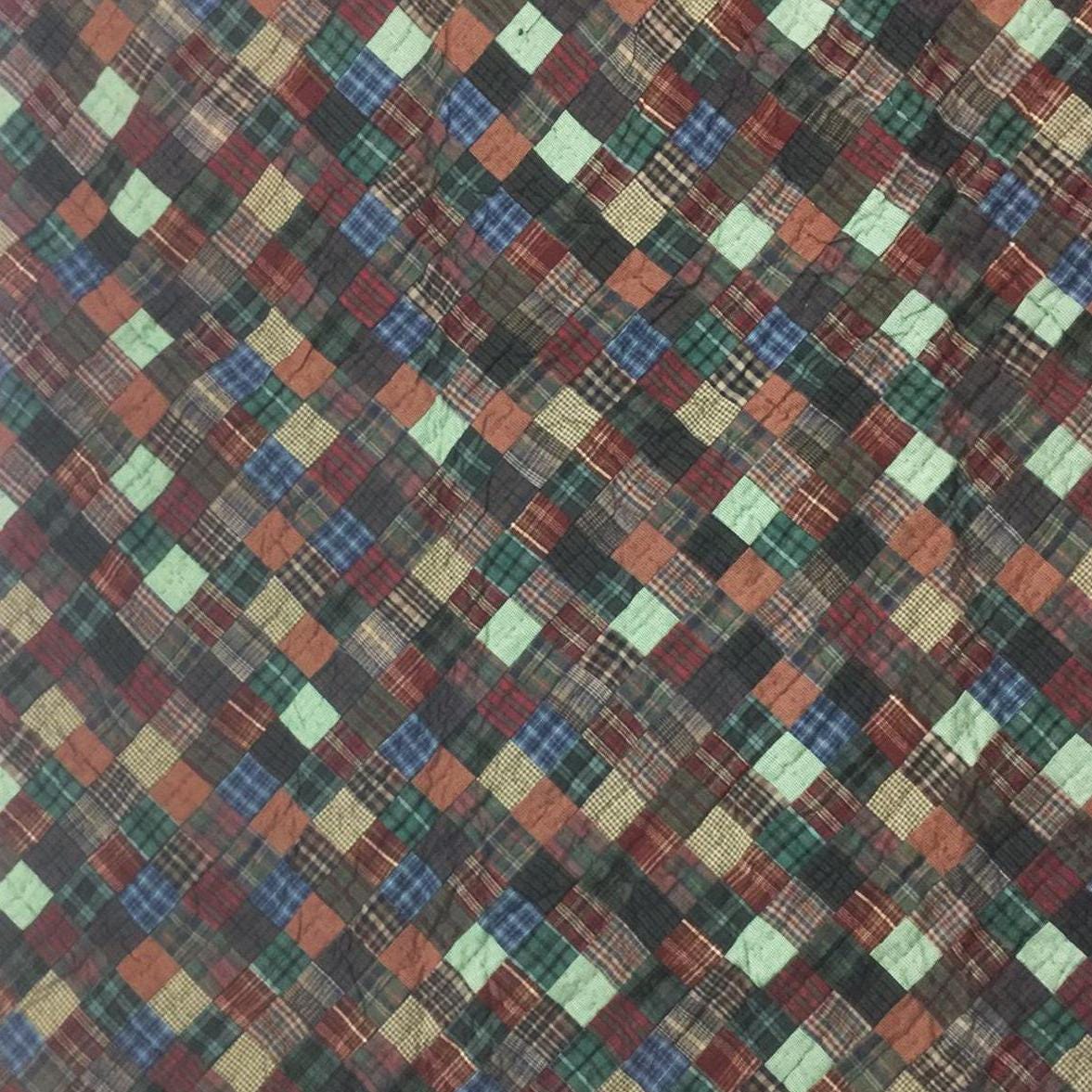 Made of Patchwork hand quilted dark plaid Calico cotton fabric, creating a red and geen plaid fabric Diamond and Squares.