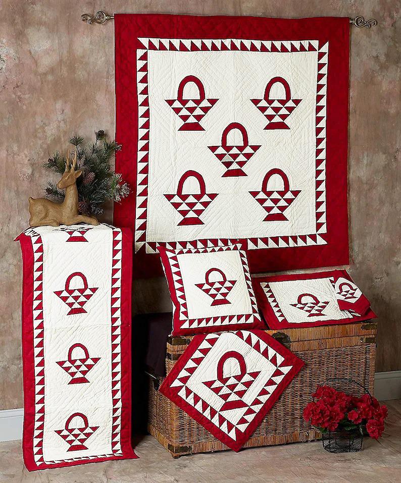 Wall hanging quilt, Small quilt, Throws, Table Toppers quilt, Baby Quilt, Basket Cranberry Red/Off-White Cotton fabric by HOME HEART Brands