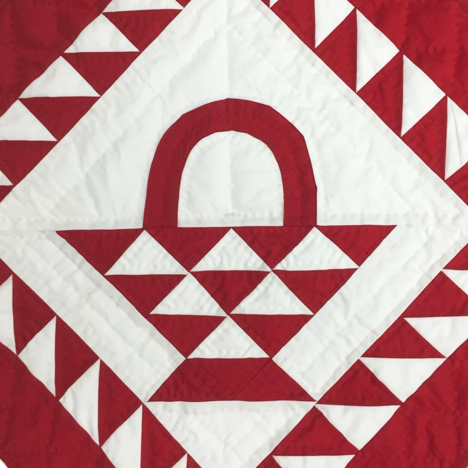 Made of Patchwork Cranberry Red and Off-White Calico cotton fabric, creating a Flower Basket design.