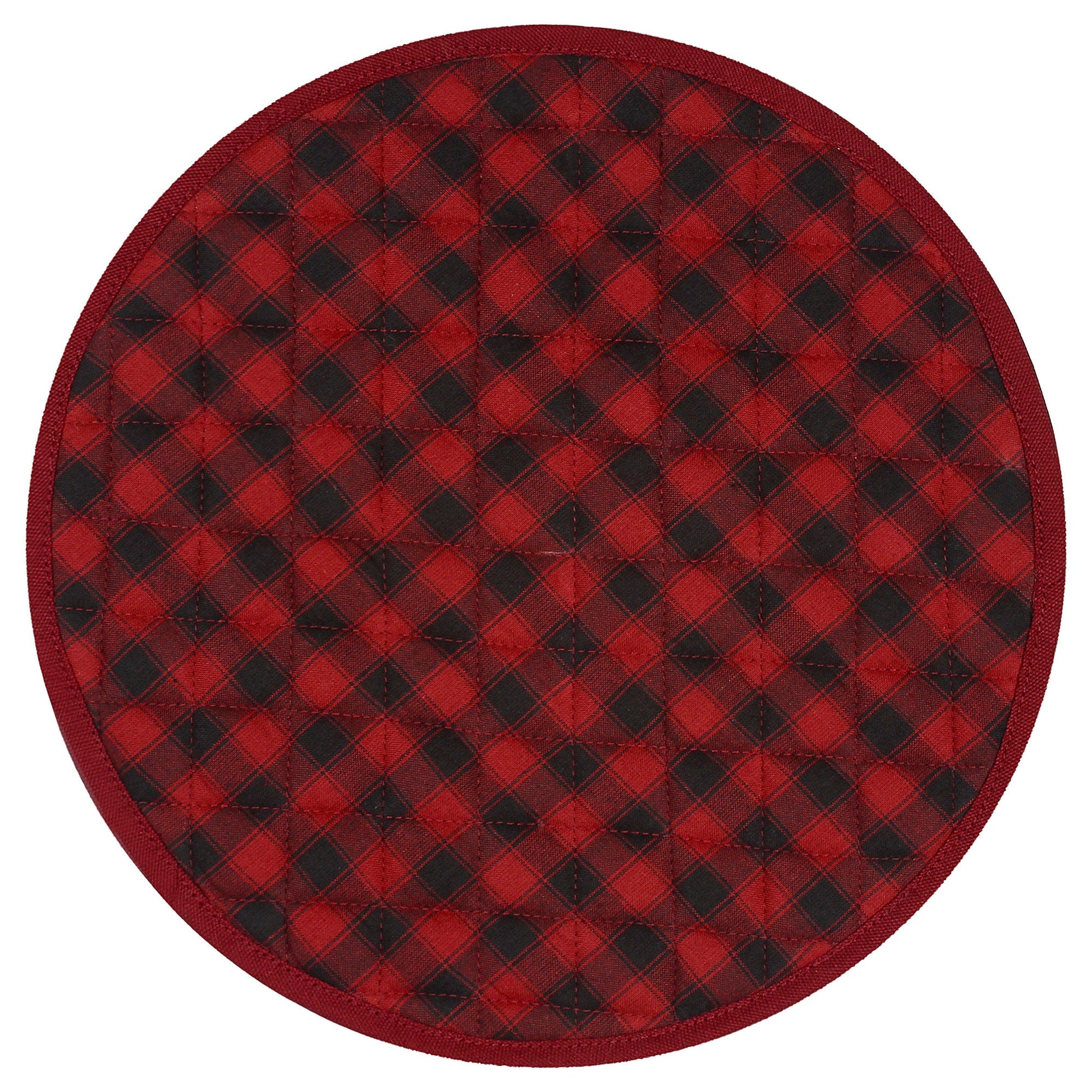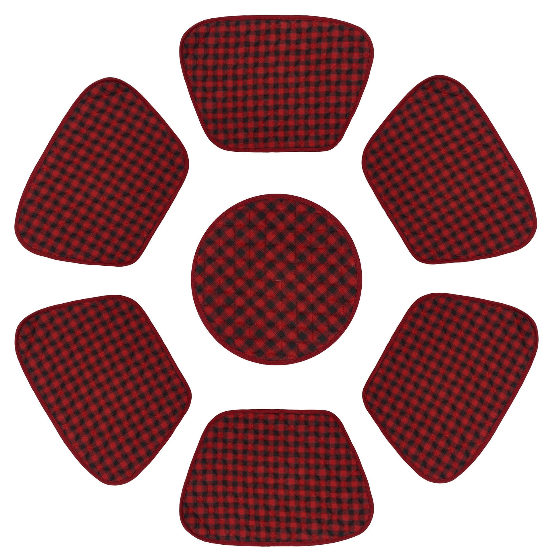 Wedge quilted placemat ,Trivet, pot holder, table mat Farm house Buffalo plaid cotton dark red black reversible by HOME HEART Brands(India)