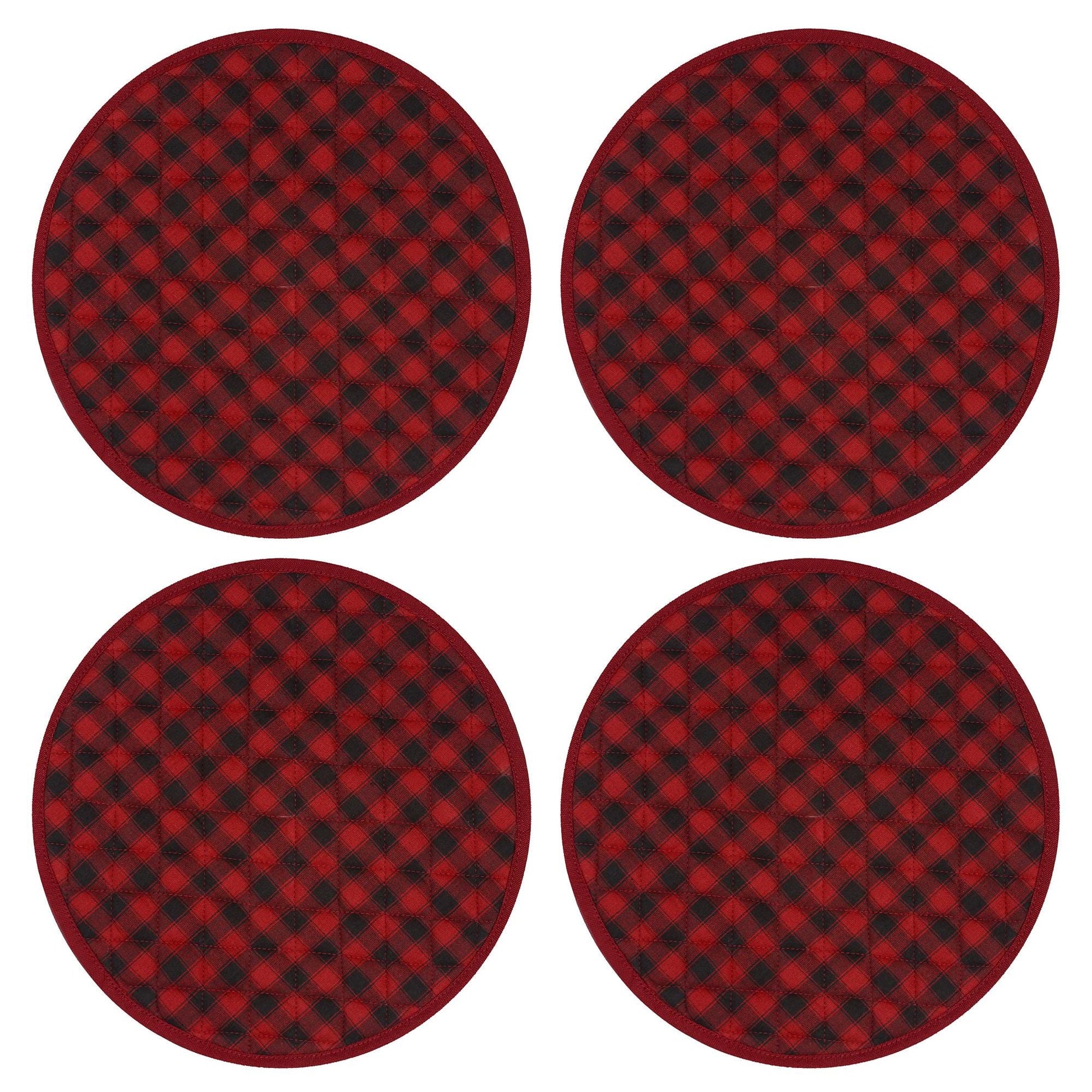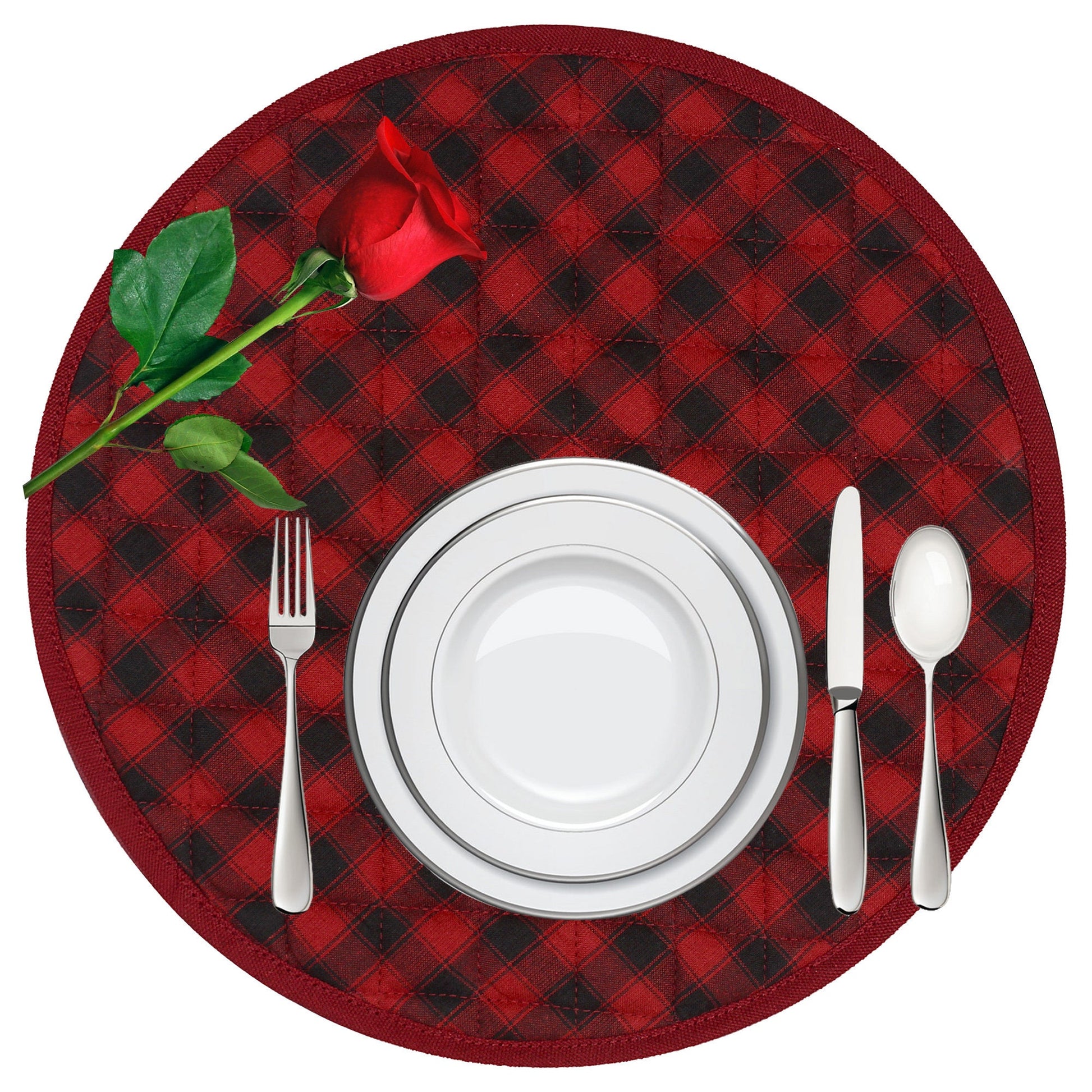THE BEST QUILTED HOME DECOR ON HIGH QUALITY PLAID COTTON FABRIC- It could be as a placement or for decor as a trendy item for your round and any table. Each is curved to fit perfectly around the table plus  a round mat to place as a centerpiece for a finished look.